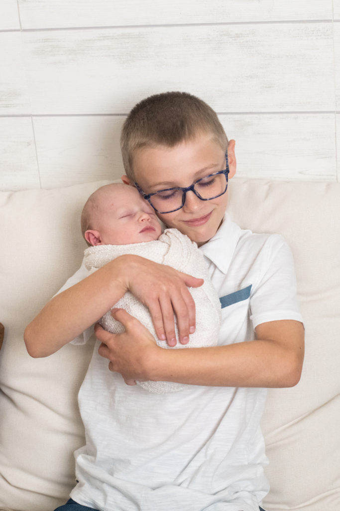 Before the session, it helps to let older siblings know what to expect. Let them know they will get to hold or snuggle their new baby brother or sister for a few photos.